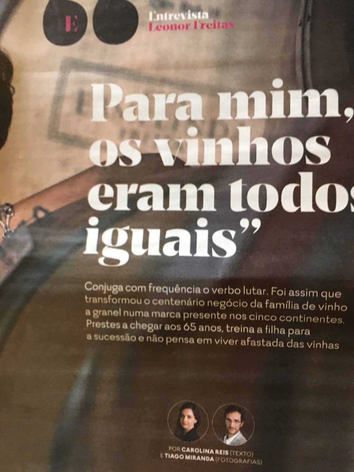 Vale a pena ler a entrevista em que se percebe a história da empresa e da marca, aliada à história da família, numa conversa conduzida por Carolina Reis em que se evidencia também o papel da vontade, da humildade, da coragem e do testemunho. O percurso de Leonor Freitas é a corrida atrás de um sonho e de uma identidade, por onde correm lágrimas, esforço e um incondicional apego às raízes. Sentimos o prazer de ser contada uma história em que mesmo as designações comerciais para os vinhos têm uma justificação: "Tudo tem história, tudo é sentido!" é a última frase da entrevistada, que podia ser a primeira, de tal forma a entrevista é coerente. A ler!